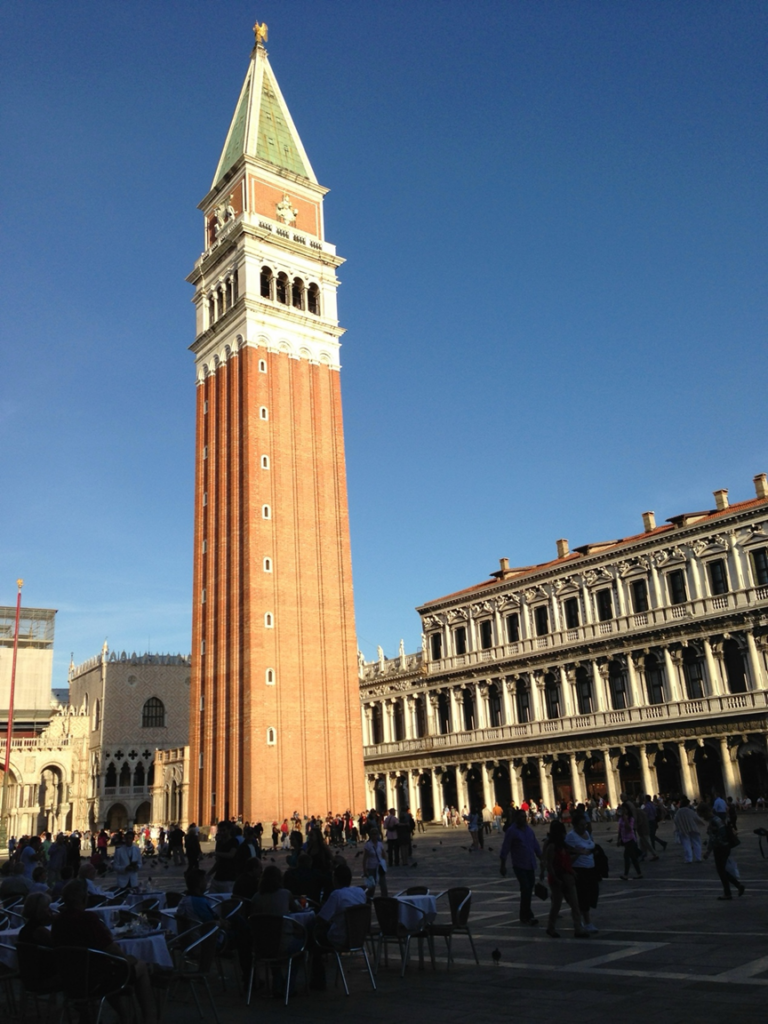 É a torre do sino da basílica, localizada na praça, bem em frente. A torre mede 98 metros de altura, sendo uma das estruturas mais altas e um dos símbolos da cidade. Antigamente era uma torre de observação e farol para navios e, mais tarde, campanário com sinos para marcar eventos civis e religiosos. Tem cinco sinos e no alto uma pirâmide e a estátua dourada do Arcanjo Gabriel no topo. A torre foi reconstruída em 1912, após um colapso. Os turistas podem subir, por elevador, ao seu topo para uma vista panorâmica de Veneza e da Laguna em frente.